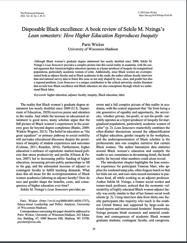 Book Review: Lean Semesters by Sekile M. Nzinga