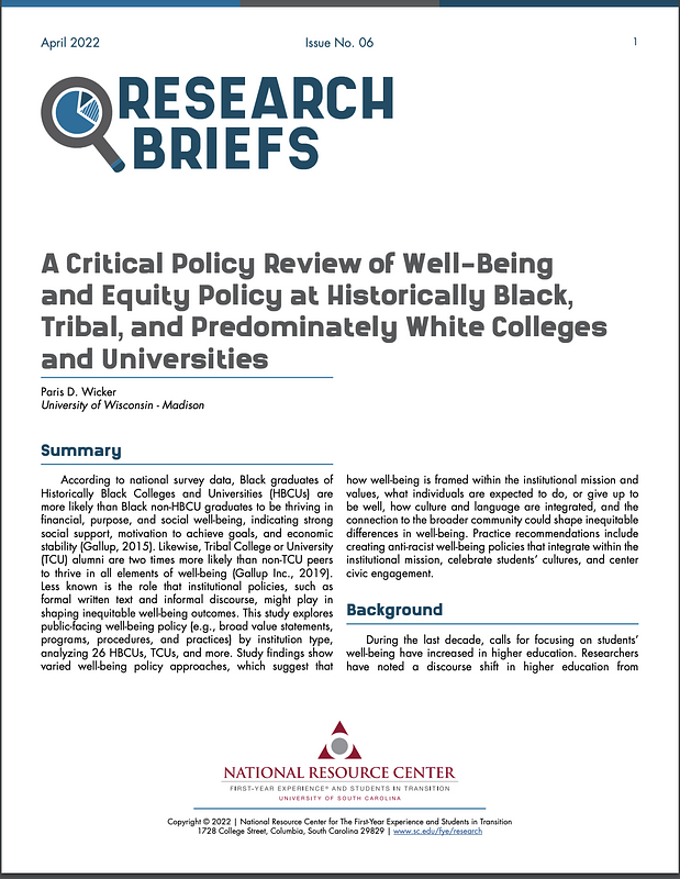 Policy Brief: A Critical Policy Review of Well-Being and Equity Policy at Historically Black, Tribal, and Predominantly White Colleges and Universities